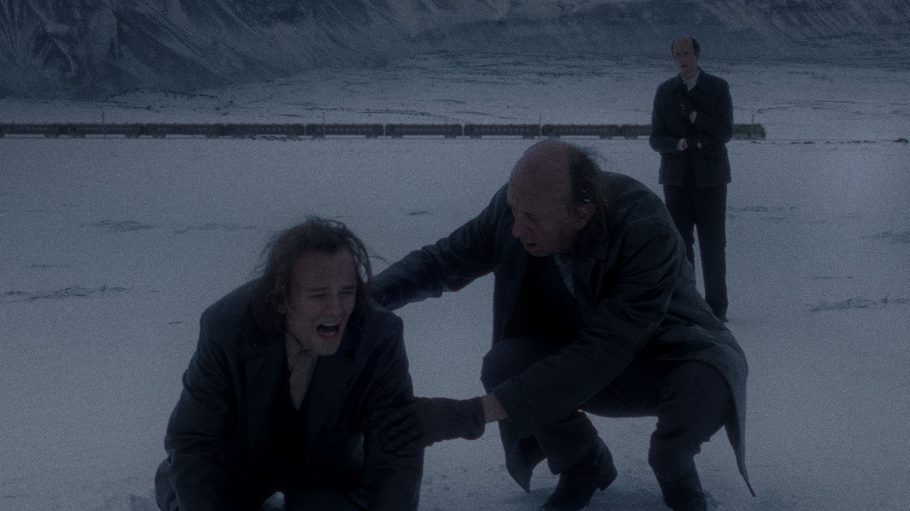 EN/ Three men wake up in a stopped train. All the other passengers are sound asleep. Once outside the train, they find themselves in an unusual snowy landscape.
